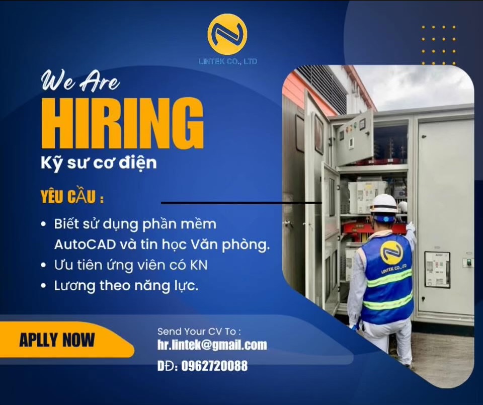 TUYỂN DỤNG GẤP] KỸ SƯ CƠ ĐIỆN (M&E) – CÔNG TY LINTEK.